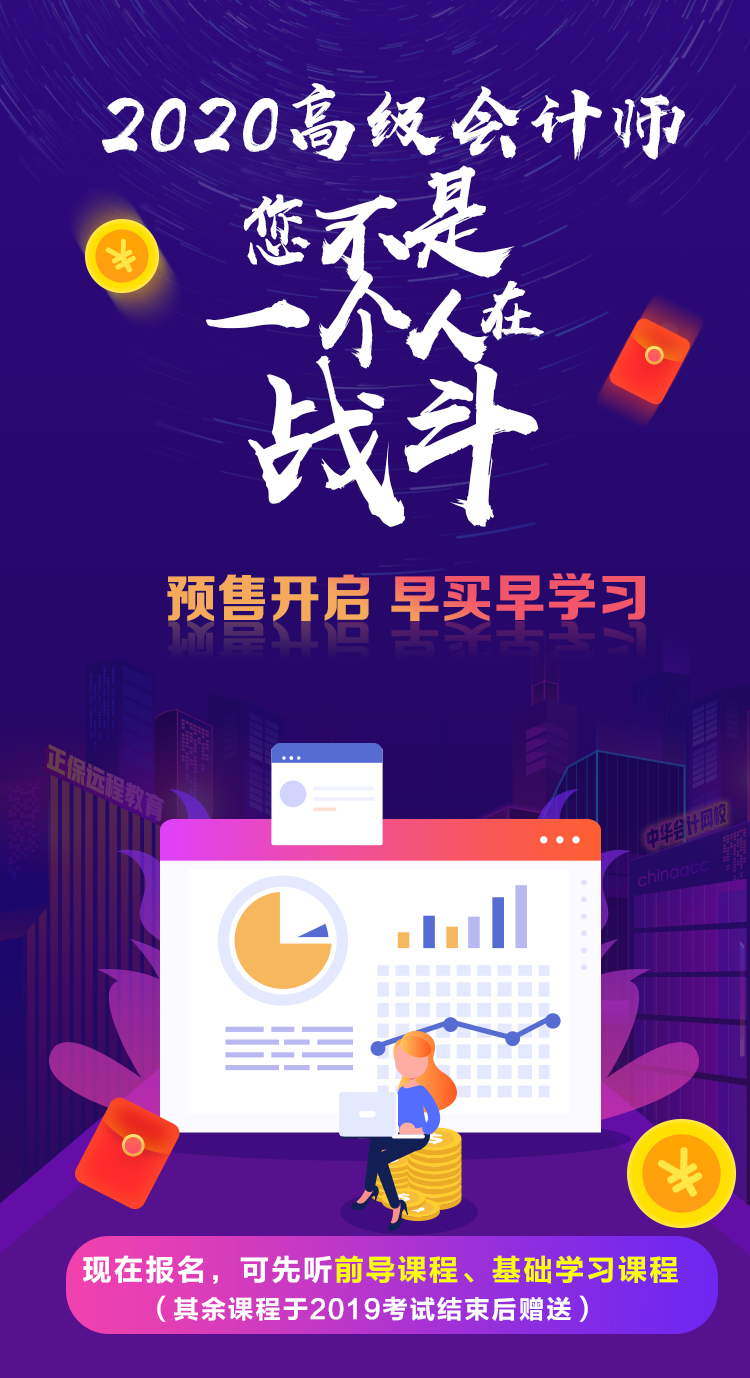 2020年高级会计师课程预报名开始,考试+评审+论文一站式攻关服务!现在报名即可以先听前导课程+基础学习课程,论文班服务可自行开通!跟着正保会计网校节奏学习,不再迷茫。