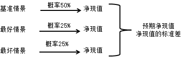 情景分析是用来分析项目在最好、最可能发生和最差三种情况下的净现值之间的差异,与敏感性分析不同的是,情景分析可以同时分析一组变量对项目净现值的影响。