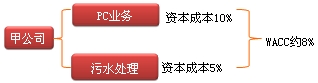 如果所有项目都按照8%的资本成本进行折现,PC业务净现值就会虚增,污水处理项目的净现值就会虚减,从而会误导决策。