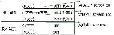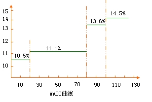 0-20万元的WACC=0.5×10%×(1-40%)+0.5×15%=10.5%