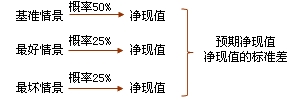最后,计算出项目各净现值的平均数,作为项目的预期净现值;再计算出项目的标准差,用来衡量项目的风险。
