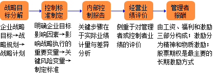 管理控制的程序通常包括战略目标分解、控制标准制定、内部控制报告、经营业绩评价、管理者报酬五个步骤。