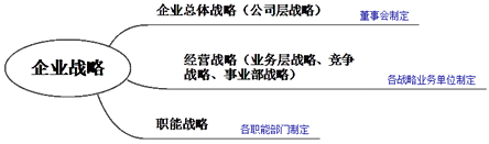 企业战略管理体系是由企业总体战略、经营战略和职能战略三个层次构成的。