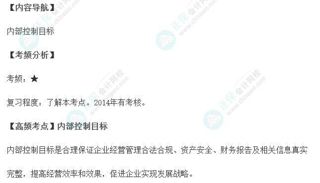 2023高会考试提前至5月13日,备考时间紧迫,各位考生应合理安排复习时间,提高复习效率!正保会计网校为各位备战高级会计师考试的各位考生带来了《高级会计实务》高频考点,跟上老师的步伐按计划完成学习,马上开始学习今天的《高级会计实务》第三章高频考点:内部控制目标。