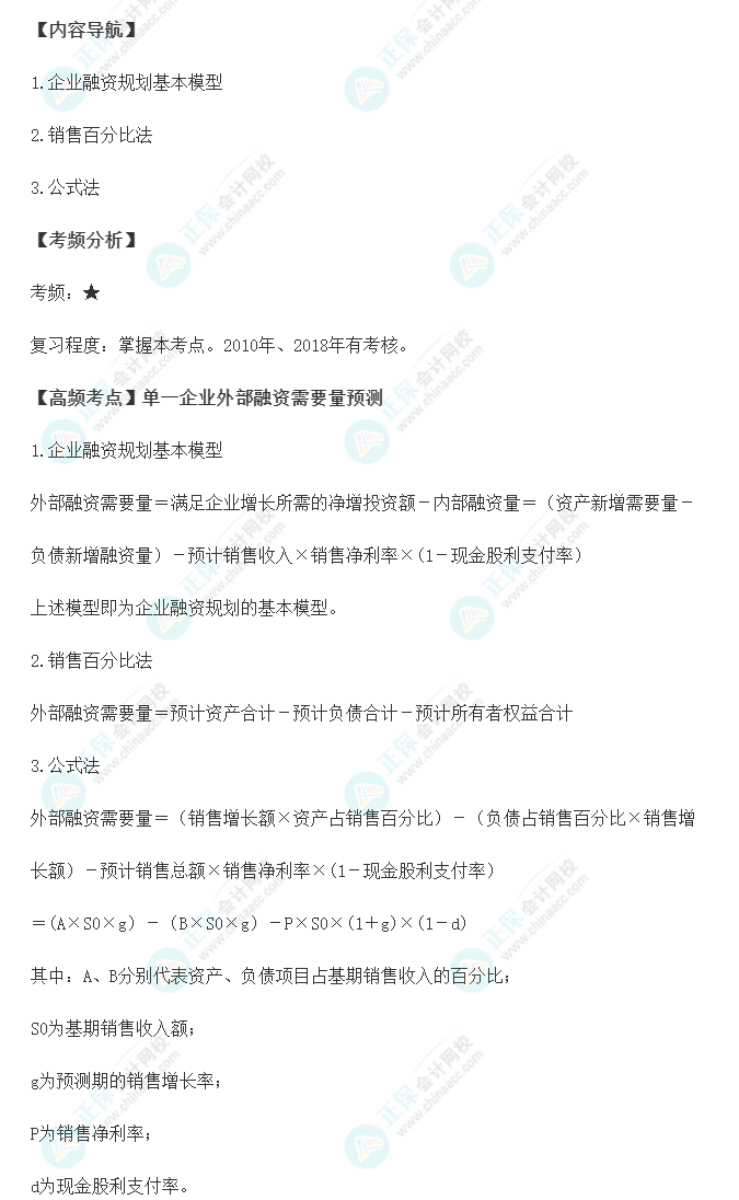 2023高会考试提前至5月13日,备考时间紧迫,各位考生应合理安排复习时间,提高复习效率!正保会计网校为各位备战高级会计师考试的各位考生带来了《高级会计实务》高频考点,跟上老师的步伐按计划完成学习,马上开始学习今天的《高级会计实务》第四章高频考点:单一企业外部融资需要量预测。