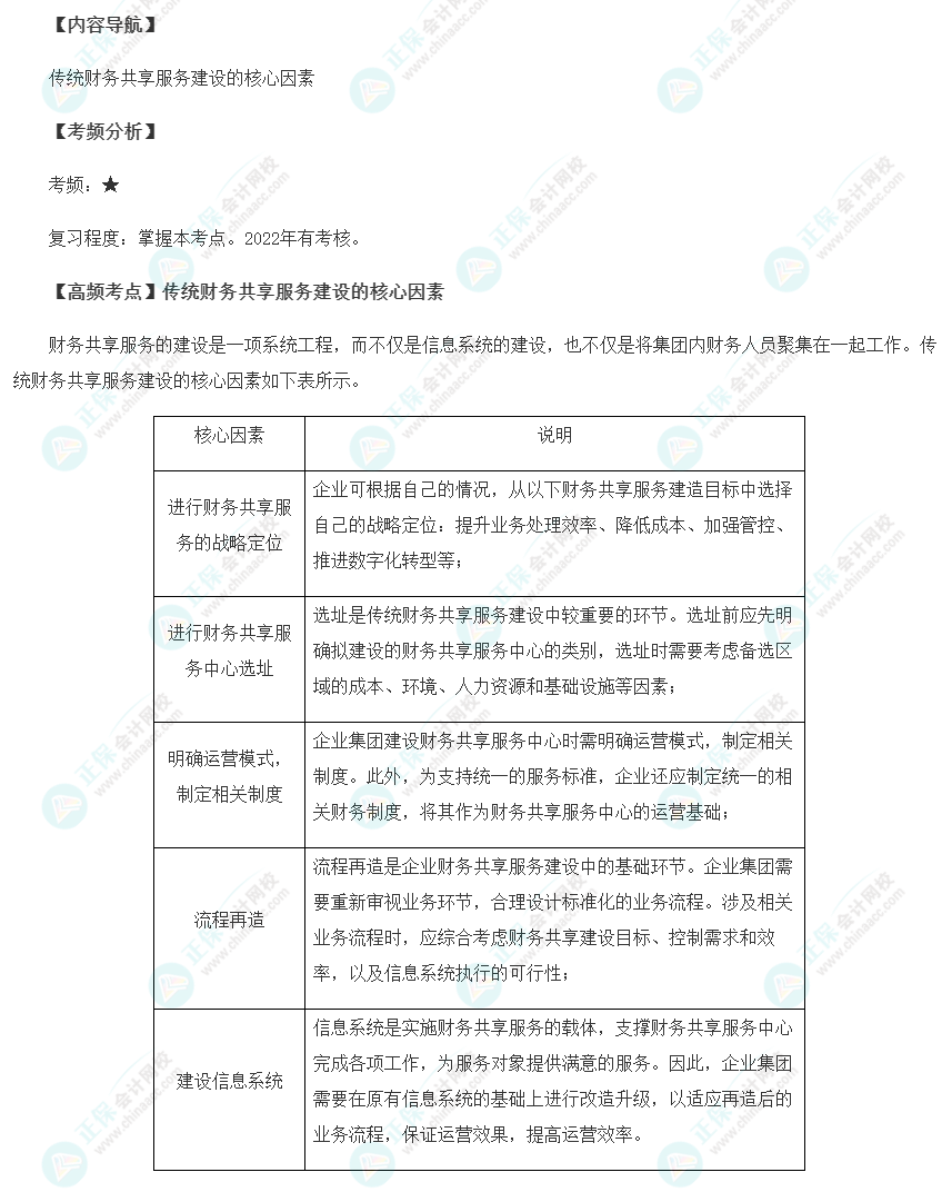 2023《高级会计实务》高频考点:传统财务共享服务建设核心因素