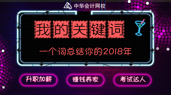转眼间2018年还有1个月就要结束了,回望过去的一年里,你有什么事情是值得和大家一起分享的呢?请你用一个词总结你的2018年!进而赢取正保会计网校精美礼品哦!查看原帖>>