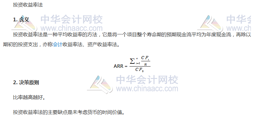 知识点七:投资决策的投资收益率法