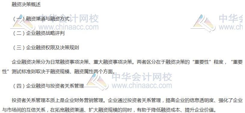 正保会计网校特为大家整理了2019年高级会计职称考试《高级会计实务》第二章的知识点“融资决策概述”,希望可以给大家的备考有一定的帮助!祝大家学习愉快!
