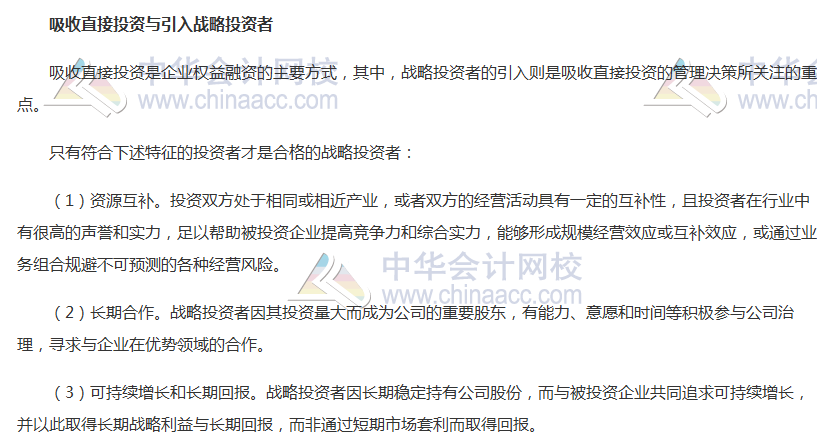 正保会计网校特为大家整理了2019年高级会计职称考试《高级会计实务》第二章的知识点“吸收直接投资与引入战略投资者”,希望可以给大家的备考有一定的帮助!祝大家学习愉快!