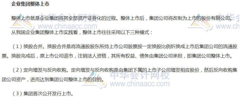 正保会计网校特为大家整理了2019年高级会计职称考试《高级会计实务》第二章的知识点“企业集团整体上市”,希望可以给大家的备考有一定的帮助!祝大家学习愉快!