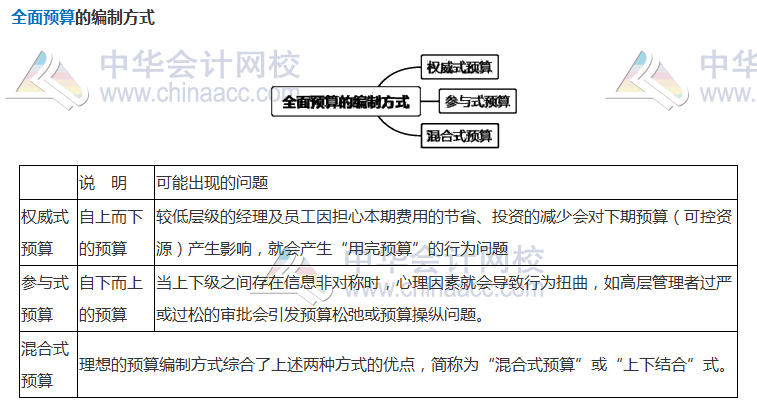 知识点五:全面预算的编制方式