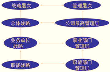 企业战略管理体系是由公司战略,事业部战略和职能战略三个层次构成的。