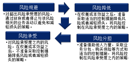 (1)风险应对策略的选择依据是企业风险分析的结果,企业通过风险分析了解风险的重要性水平,针对不同的风险级次分别选择应对策略;