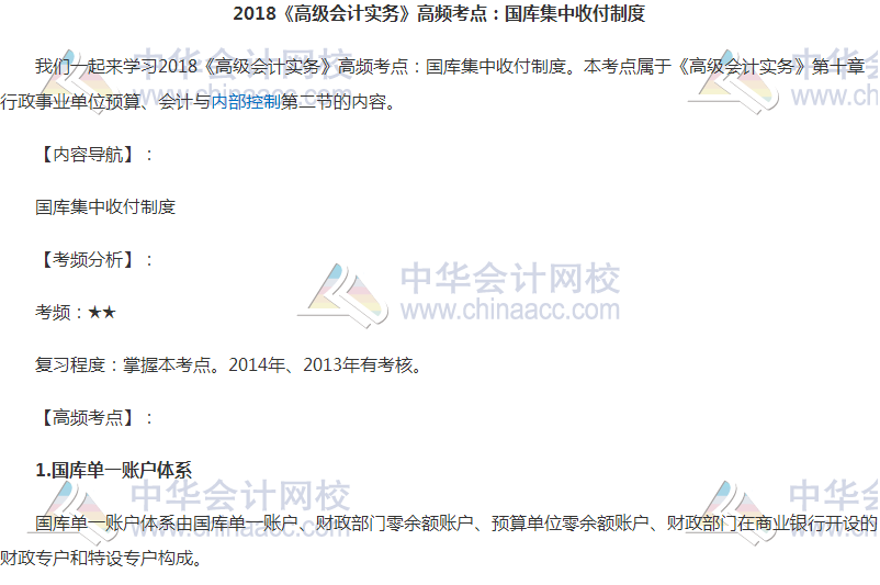 2018年高级会计师备考已经进入火热状态,为了让学员对高级会计师考试有更好地认识,正保会计网校为大家精心整理了高级会计职称考试高频考点。下面我们一起来学习2018高会《高级会计实务》高频考点:国库集中收付制度,快来学习吧。