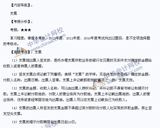 我们一起来学习2013初级会计职称《经济法基础》高频考点:本考点属于《经济法基础》第三章支付结算法律制度第七节的内容。