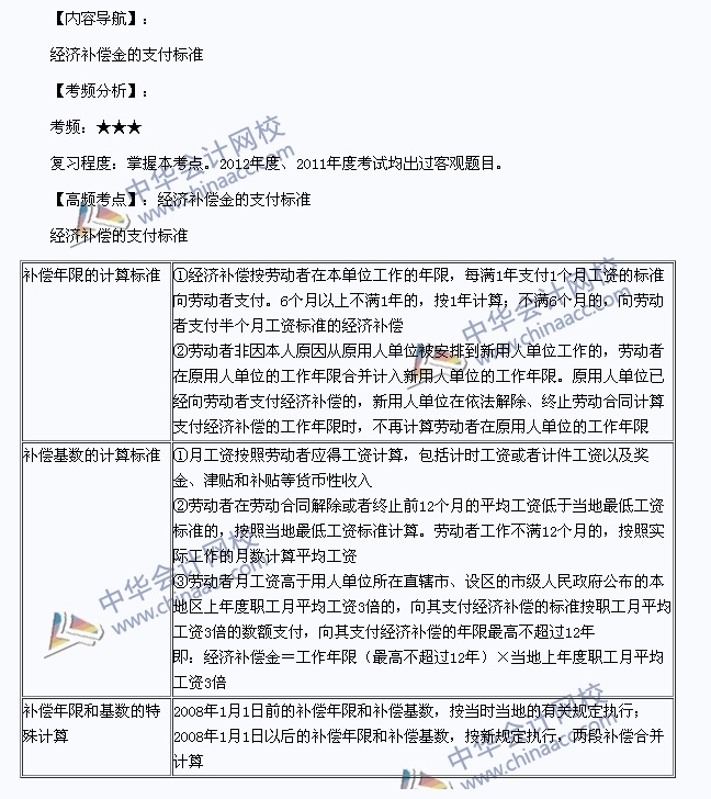 2013初级会计《经济法基础》高频考点:经济补偿金的支付标准