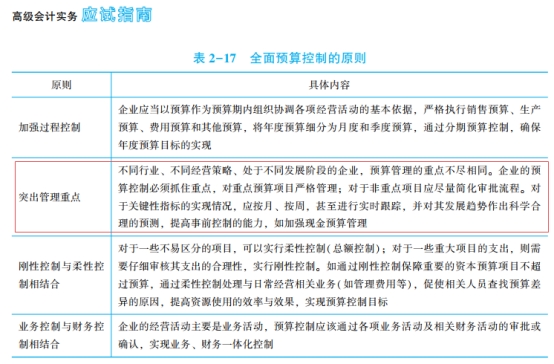 2023年高级会计实务《经典案例分析》P55的(二)全面预算控制的原则。