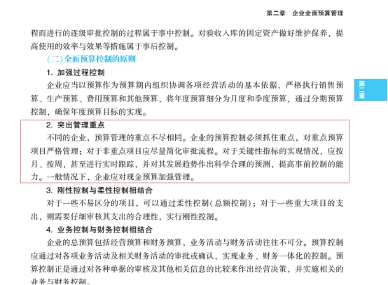 【点评】本题考核“预算控制原则”知识点。该题目所涉及知识点在下列正保会计网校(www.fawtography.com)2023年高级职称《高级会计实务》辅导中均有体现:2023年高级会计实务《应试指南》P84的2-17,2023年高级会计实务《经典案例分析》P55的(二)全面预算控制的原则,2023年高级会计实务《全真模拟试卷》P89的第2题。