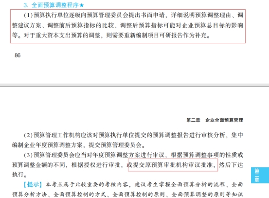 2023年高级会计实务《应试指南》P86-87的“3.全面预算调整程序”。
