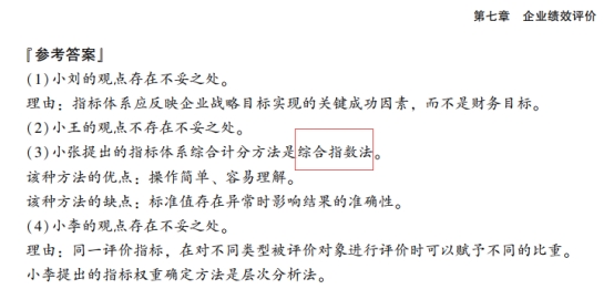 (4)根据资料(3),指出对应的绩效评价计分方法,并说明其缺点。