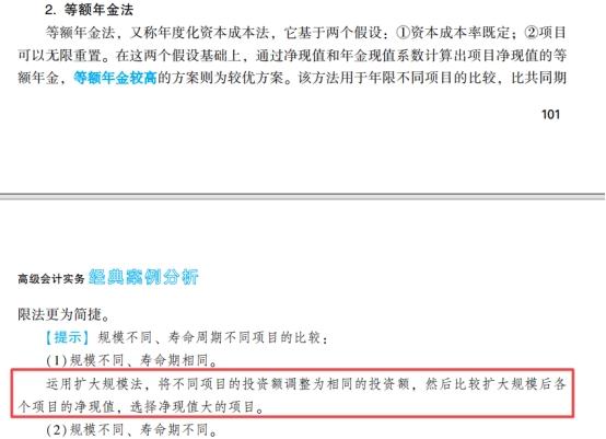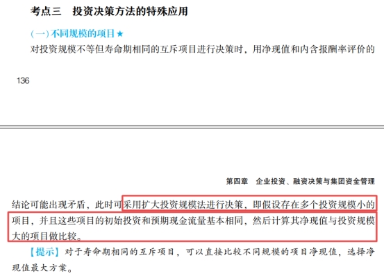 【出题角度】投资决策方法的特殊应用(不同规模的项目)