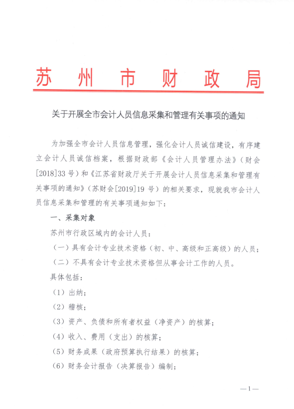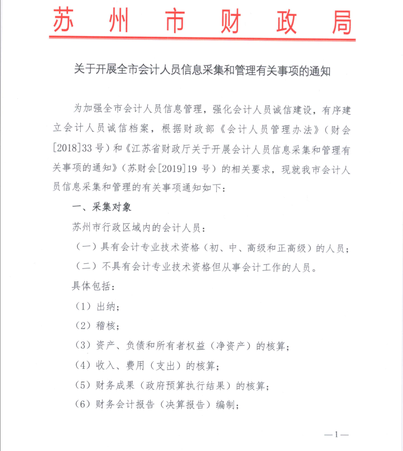 苏州市行政区域内的会计人员注意了!苏州地区会计人员信息采集和管理工作自2019年5月10号开始并纳入日常会计管理工作。