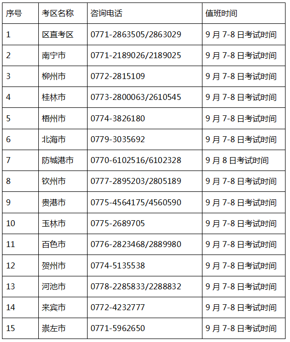 广西发布关于2019年度全国会计专业技术中高级资格考试广西考区考试期间各地咨询电话,在考试期间如果有疑问可打电话咨询。