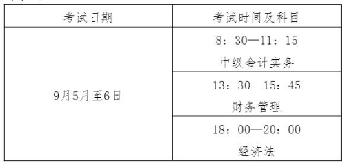 (一)2020年度全国会计专业技术中级资格考试(江西考区)仍于2020年9月5日至6日举行。各科目考试时间及时长如下: