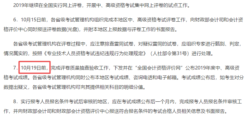 2019年高级会计师考试成绩查询时间是什么时候呢?据《2019年度全国会计专业技术中高级资格考试考务日程安排及有关事项的通知》获悉,2019年高级会计师考试成绩于10月19日前下发并在全国会计资格评价网公布高级会计师资格考试成绩,考生可输入考生准考证号或身份证号码进行查询。