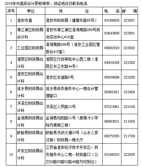 关于2019年度全国会计专业技术中高级资格考试(淮安考区)有关事项的通知