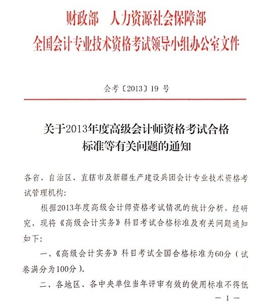 全国2013年高级会计师考试成绩合格标准已经发布,根据《关于2013年度高级会计师资格考试合格标准等有关问题的通知》获悉,2013年高级会计师考试成绩合格标准为60分。具体内容如下: