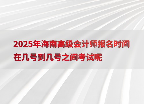 2025年海南高级会计师的报名时间为1月3日10:00至1月24日12:00。