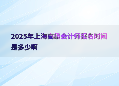 2025年上海高级会计师的报名时间为1月8日10:00至1月24日12:00。