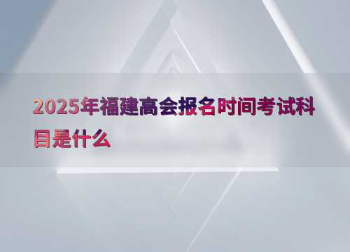 2025年福建高级会计师考试科目为《高级会计实务》,考试时间为5月17日,上午8:30至12:00,共计210分钟。