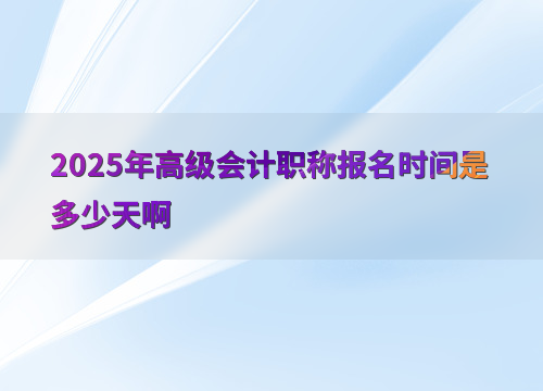 2025年高级会计职称考试的报名时间从2025年1月3日开始,至1月24日截止,持续时间为22天。
