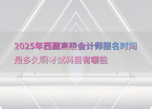 2025年西藏高级会计师考试科目为《高级会计实务》,考试时间为5月17日,上午8:30至12:00,共计210分钟。