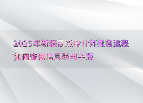2025年新疆高级会计师的报名时间从1月6日开始,至1月24日12:00结束。