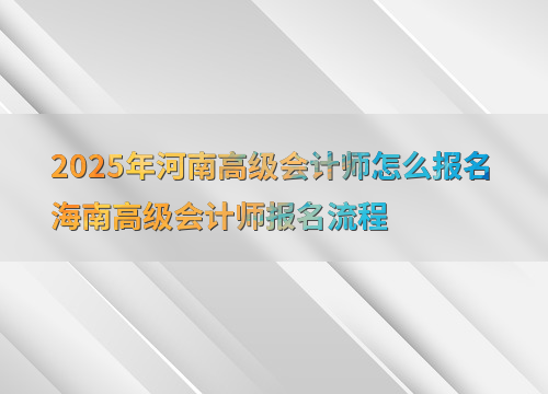 2025年河南高级会计师的报名时间为1月9日-24日12:00。