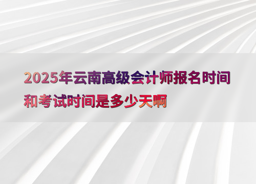 2025年云南高级会计师的考试时间定为5月17日,考试科目为《高级会计实务》,考试时长为210分钟。