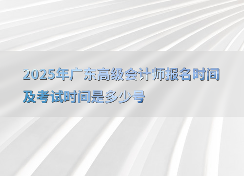 2025年广东高级会计师考试定于5月17日举行。考试科目为《高级会计实务》,考试时长为210分钟,即从上午8:30至12:00。