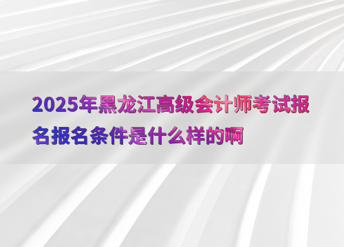 2025年黑龙江高级会计师考试的报名条件主要包括基本条件和学历及工作年限要求。