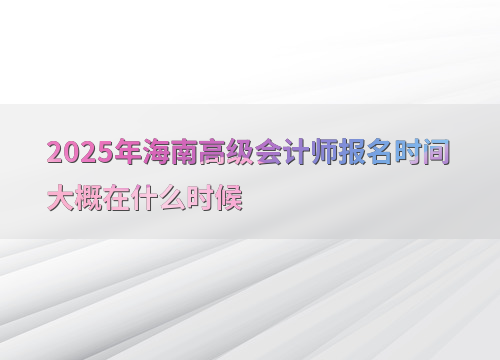 2025年海南高级会计师的报名时间定为1月3日10:00至1月24日12:00。