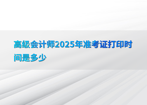 2025年高级会计师考试的准考证打印时间将在4月16日前由各省级考试管理机构公布。