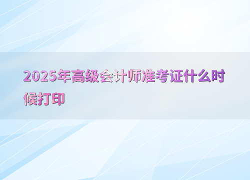 2025年高级会计师考试的准考证打印时间将在4月16日前由各省级考试管理机构公布。