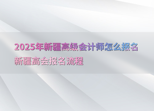 2025年新疆高级会计师报名时间为1月6日至1月24日12:00。