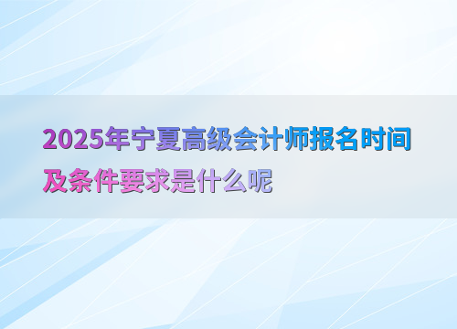 2025年宁夏高级会计师报名时间为1月3日至1月24日。