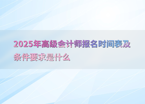 2025年高级会计师考试报名时间从1月3日开始,至1月24日截止。
