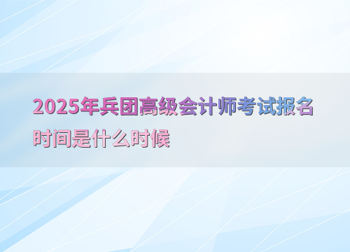 2025年兵团高级会计师考试报名时间为1月10日至1月24日12:00。