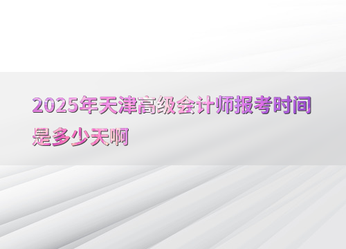 2025年天津高级会计师报名时间为1月3日9:00至1月24日12:00,共计21天。